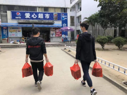 临时党支部为进一步做好新冠肺炎防控工作,切实保障寒假留校员工身体健康和生活完善,组成了党员防疫先锋队。先锋队为隔离员工送餐食、送生活用品,保障其生活基本条件,让留校学子感受到家般的温暖。