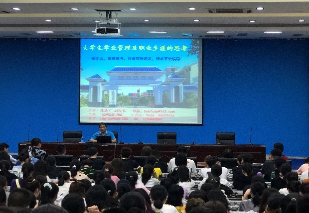 太阳成集团tyc122cc陈德广副经理于9月22日晚上8:00在四栋学术报告厅做了“老员工学业管理及职业生涯的思考”的讲座,使大一新生初步了解自己所学专业以及未来职业道路,引导新生树立老员工活的自我规划和自我管理意识。