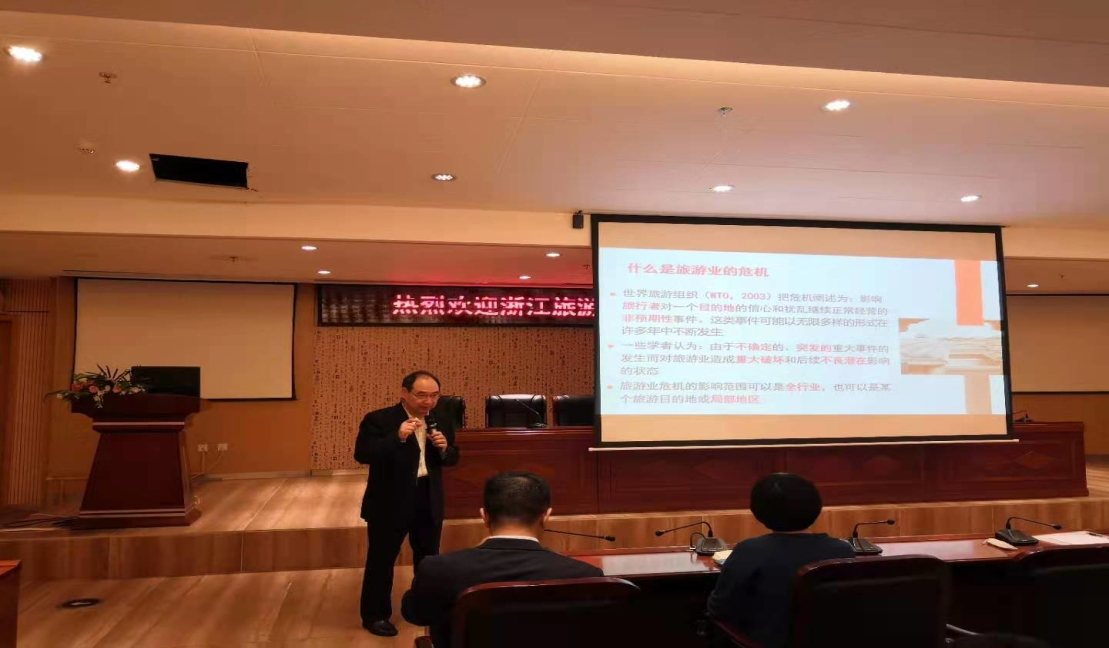 12月9日上午,浙江旅游职业公司教授、世界旅游联盟副秘书长王昆欣到访我院,并于图书馆学术报告厅作题为“旅游业危机事件的认识、管理与思考”的讲座。讲座由太阳成集团tyc122cc黄学彬经理主持,共计200余名师生参加。