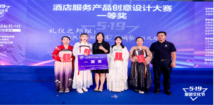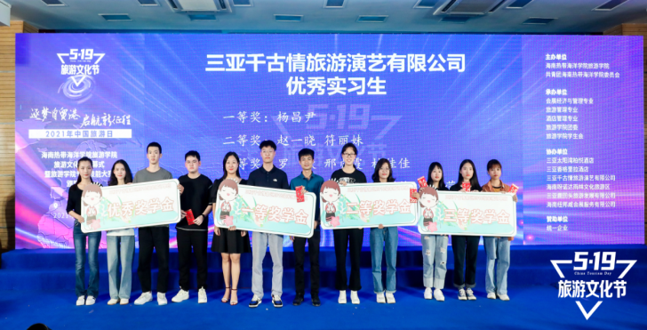 颁奖典礼共分为四个部分进行。首先是序章:不忘初心,由公司员工代表带来的大合唱表演《灯火里的中国》。第二部分是回顾专业技能大赛,展现选手们“高光时刻”的启航篇:争朝夕展风流,在这一环节里,对各专业技能大赛一等奖作品进行展示,包括旅游管理专业作品《槟榔古韵》和《南山佛旅》、酒店管理专业创意产品—礼仪之邦:中餐厅创意设计、会展活动空间创意设计暨沙盘模拟大赛作品沙盘讲演—大洋深处:海洋珍稀动物保护展。第三部分是颁奖典礼的重头戏——逐梦:历千帆绘蓝图,由院领导、各专业负责人依次为在专业技能大赛中获奖的同学们颁奖,还有校企代表为优秀实习生颁奖。第四部分谢幕:砥砺前行,旅院全体教师快闪歌曲表演《我们都是追梦人》为本次颁奖典礼画下圆满的句号,同时激励大家,不忘初心,砥砺前行!