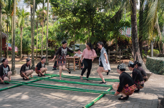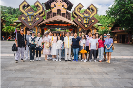 2022年6月12日下午,在刘宏兵老师的带领下,同学们来到了三亚的黎族村寨中廖村。在游览中,同学们观看了中廖村展现黎族风貌的表演,并体验了竹竿舞。同学们结合专业知识与当地村民和工作人员进行了虚心请教,他们从华侨城投资到中廖村开发模式再到产品设计与运营对同学们的问题进行了耐心的解答。