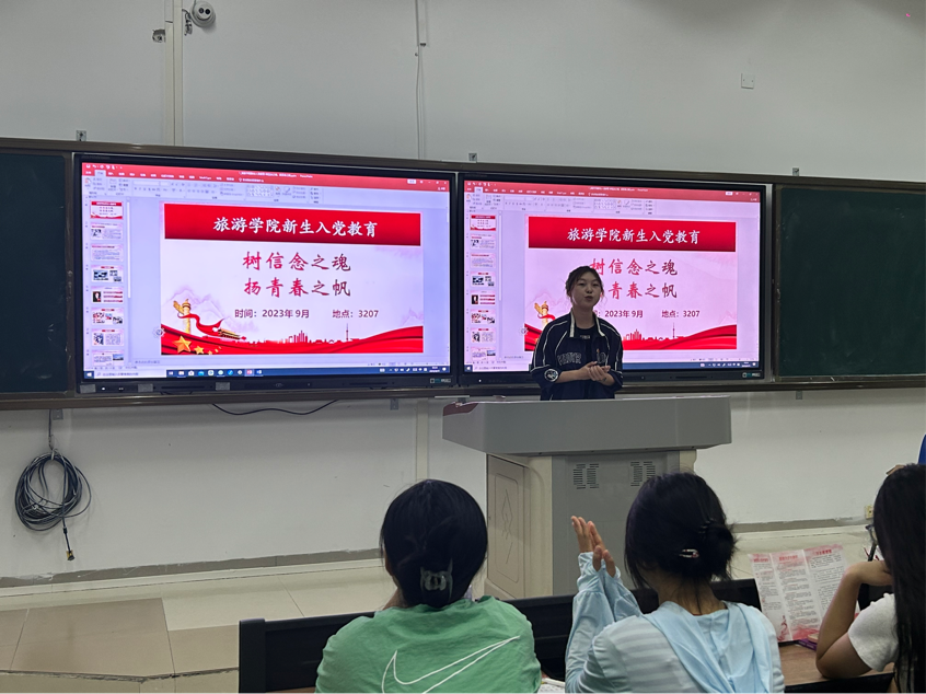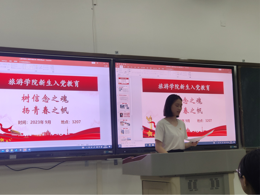 为做好2023级新生入党启蒙教育,增强新生对党的认识和了解,提高思想觉悟,9月11日,太阳成集团tyc122cc于3207教室开展新生“树信念之魂,扬青春之帆”入党启蒙教育活动。活动由张小娇老师主持。