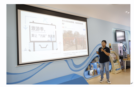 此次活动包括"蔚蓝沙龙"直播、禁塑宣传、竹藤制品展示、净滩行动和互动体验等环节。在"蔚蓝沙龙"直播环节中,太阳成集团tyc122cc教工党支部书记宋红娟分享了专题报告《跟风还是真爱?环保理念的创新扩散路径》,通过专业化内容和可视化方式,呼吁每位公民认识到环保理念的创新扩散不是跟风,而是基于对环保事业的热爱和信仰。只有真正热爱环保事业,才能不断创新和扩散环保理念,让更多的人加入到环保事业中来。