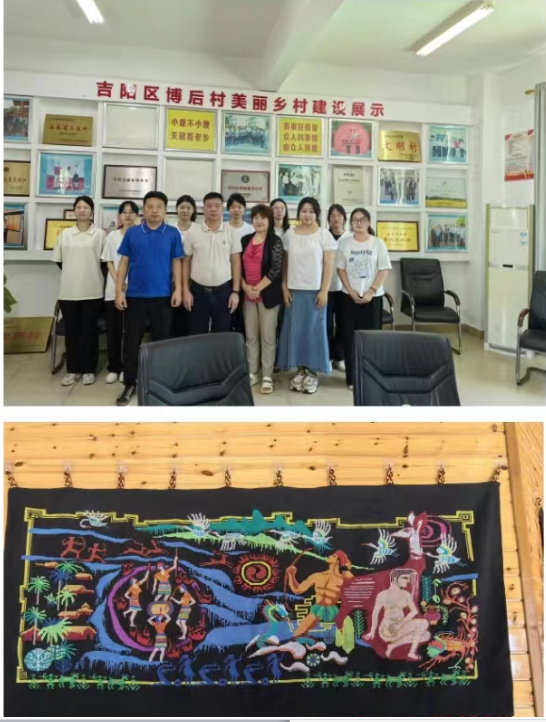 走访第二站到达了博后村黎族文史馆。馆内陈列着黎锦、黎族特色服饰、首饰等手工艺品,团队成员受到了慕容馆长的热情接待,并且在慕容馆长的引荐下前往博后村,与村书记和农村工作队的队长就黎族文化发展与保护问题进行讨论。